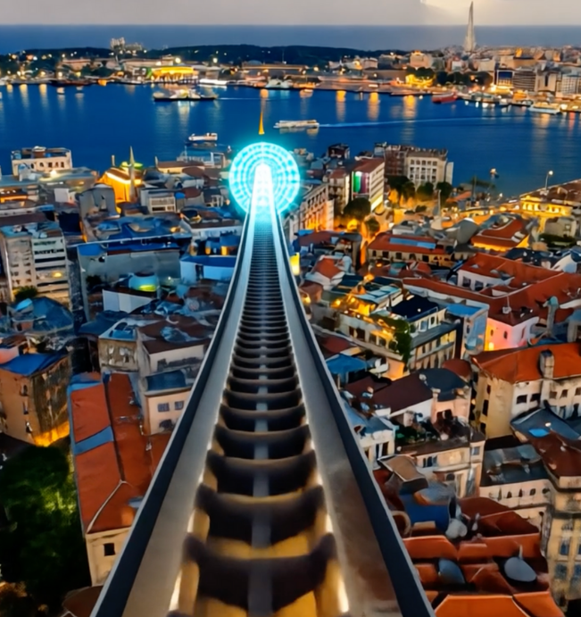 An exciting adventure in your city's skyline. Full immersion with VR headset and motion platform.